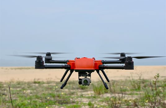 מבנה: גוף קומפקטי ואווירודינמי ללא אנטנות חיצוניות, אטום לחלוטין בתקן IP67 (גוף + שלט). כולל מערכת פרופלורים מקרבון מלא ומנגנון נחיתה מודולרי עם חיישני מרחק.